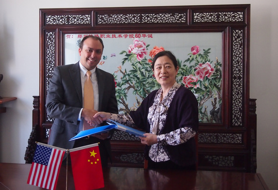 付莉副校长代表学校向客人们表示欢迎,简要介绍了学校的办学历史、人才培养和改革发展情况。文森特・帕潘德里亚副院长介绍了美国沃恩航空技术学院的基本情况、人才培养特点。经过认真的商谈,双方就合作办学、学生交换、师资与学术交流、网络教学资源建设达成共识,并建立友好合作关系,付莉副校长与文森特・帕潘德里亚副院长共同签署了合作协议。会后,客人参观了新校区部分教学场地。