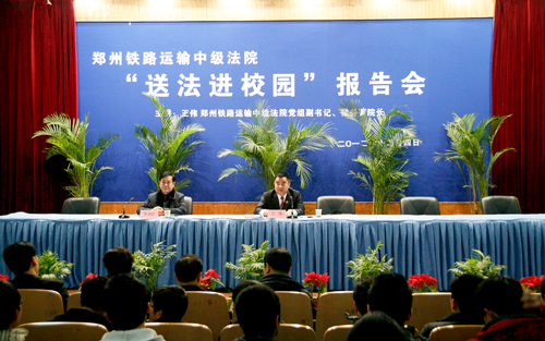 12月4日是第十二个全国法制宣传日,为深入贯彻党的“十八大”会议精神,认真落实“六五”普法规划,进一步提高师生的法制观念,切实增强师生法律意识,我校特邀郑州铁路运输中级法院党组副书记、常务副院长、高级法官王伟同志到我校交流并为师生作法制宣传讲座。