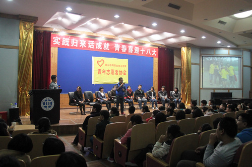 22日,社科体育部和团委联合举办学习贯彻党的十八大精神专题讲座,邀请校思政教育室的邓卫东老师为同学分析十八大的新思想、新提法、新要求,让同学们进一步清晰十八大的重要历史意义。同日,校团委、青年志愿者协会举办“实践归来话成就,青春喜迎十八大”座谈会,邀请校十佳志愿者和暑期“三下乡”社会实践服务队的优秀代表,畅谈实践感想和在社会实践对社会主义建设成就的认识和理解。