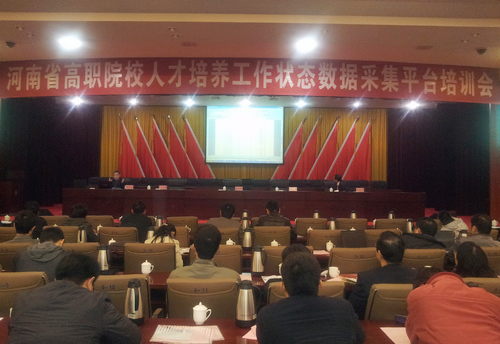 11月10日,由河南省教育厅高教处主办、我校承办的“河南省高等职业院校人才培养工作状态数据采集平台培训会”在郑州铁路局招待所举办。河南省教育厅高教处正处级调研员张大策、主任岳德胜、我校校长苏东民、副校长付莉和来自省内各高职高专院校的150余位代表参加了会议。会议聘请了教育部高职院校人才培养工作评估课题组秘书长何锡涛教授,教育部高职院校人才培养工作评估课题组成员、上海行健职业学院原院长袁允伟教授任主讲,岳德胜主任主持会议。