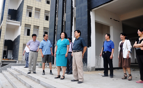 吴新云主席一行实地查看了学生宿舍、学生食堂和医学实训楼、后勤管理楼的建设情况,工程管理部门负责人对新校区建设工作进展情况进行了汇报。