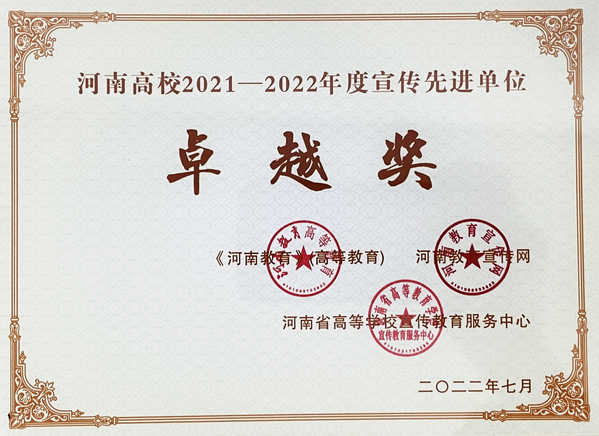 近日,河南教育新闻中心、河南教育高等教育编辑部、河南教育宣传网联合印发《关于公布河南高校2021—2022年度宣传先进单位、优秀通讯员、优秀新闻作品评选结果的通知》,我校获评河南高校2021-2022年度宣传先进单位(卓越奖),2人荣获优秀通讯员荣誉称号,2篇新闻分获优秀新闻作品一等奖、三等奖。