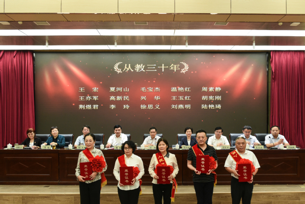 9月9日上午,学校隆重举行庆祝2022年教师节暨表彰大会。全体校领导出席会议,受表彰的先进集体和个人、从教30年教师代表在办公楼第一报告厅主会场参加会议,其他教职工通过网络直播线上参会 。