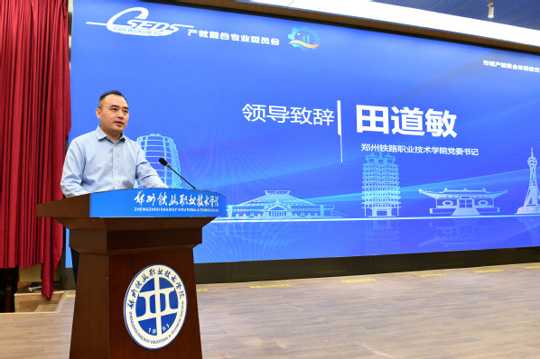 会议伊始,田道敏代表郑州铁路职业技术学院对莅临大会的领导和嘉宾表示热烈欢迎。他指出,产教融合是职业教育的生命线,更是区域经济社会发展的助推器。郑州铁路职业技术学院作为国家“双高计划”建设单位以及郑州经开区市域产教联合体牵头学校,始终坚持以服务国家战略和区域经济社会发展为导向,围绕教育部“一体两翼五重点”现代职教体系建设改革任务,在人才培养、技术创新等方面持续发力,助推产业升级和区域经济社会发展。