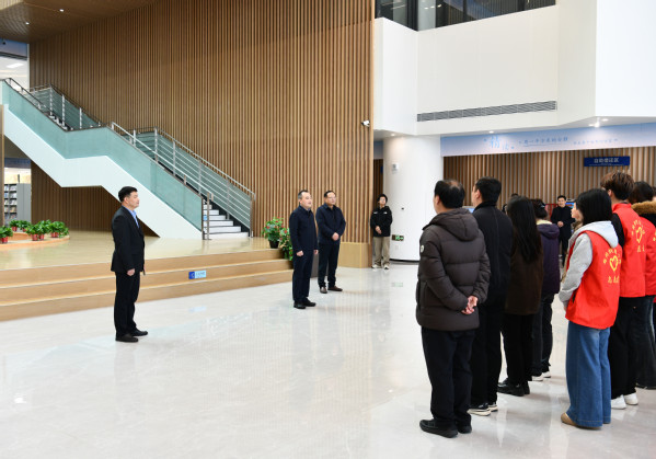调研过程中,田道敏对图书馆开馆运行成效及职教本科创建相关准备工作给予充分肯定,并对新馆后续建设提出四点要求。一是加强氛围营造。结合校园文化特色进一步优化整体设计,打造兼具内涵与美感的文化空间。二是强化智慧赋能。做好充分调研,后续加强引进智能化设备,提升图书馆智慧化、现代化服务水平。三是优化空间布局。在现有馆舍格局基础上,完善新置家具设备的空间配置方案,进一步提升使用效率。四是做好宣传推广。加强与各书院学院的对接联动,广泛邀请师生到馆体验使用,全力打造书香校园。