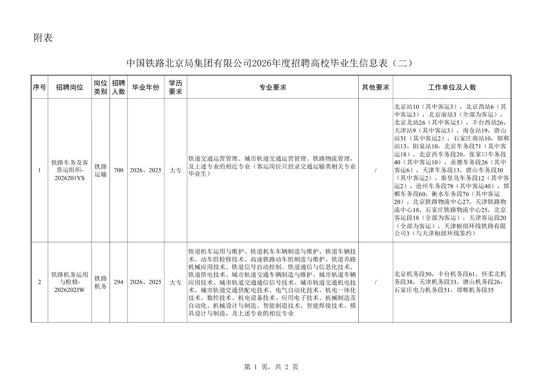 中国铁路北京局集团有限公司根据企业发展需要,招聘普通高校大专学历毕业生。具体事宜公告如下。
