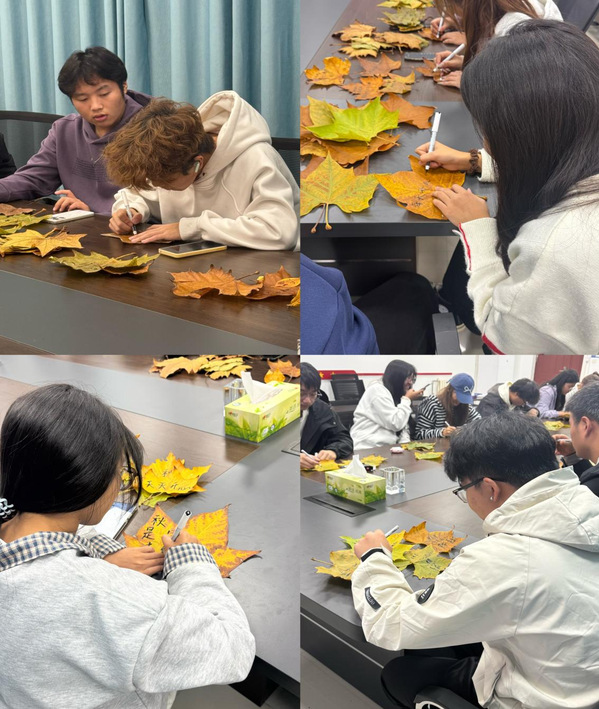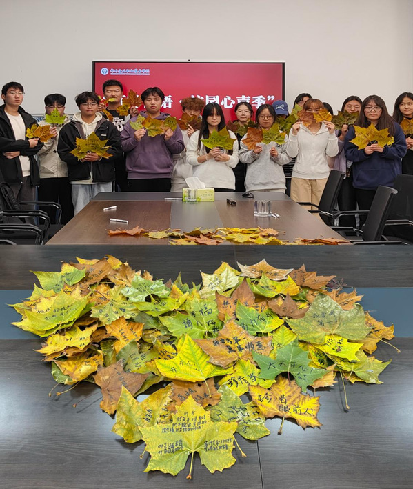 活动中,同学们拾起秋日斑斓落叶,或书写对家人的牵挂感恩、倾诉异地求学感悟,在笔墨间深化亲情联结、缓解疏离感;或围绕学业提升、习惯养成等方向梳理学期目标,以充满仪式感的表达让抽象规划变得具体可感,强化责任意识与执行动力。现场小场景互动氛围热烈,学子们自愿分享落叶上的心声与期许,在倾听与共鸣中收获鼓励,让一片片落叶串起个体与集体的温暖。
