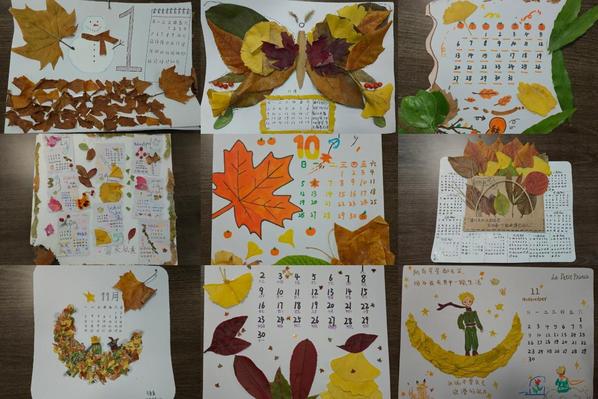活动为参与者准备了卡纸等材料,并鼓励大家自行收集落叶,松果,枯枝等“秋日信物”进行创作。同学们化身“时光设计师”,将银杏叶铺成鎏金日历页,以红枫点缀节气标识,用梧桐叶卷作复古边框,松针则错落成诗意数字——散落的秋日碎片,在巧思中重组为独一无二的创意日历。作品或清新雅致如工笔小品,或童趣盎然似自然私语,每一帧都承载着参与者对秋天的独特深情,让“变废为宝”的环保理念在创作中自然流淌,为期十天的创作体验中,环保理念悄然融入同学们的日常。