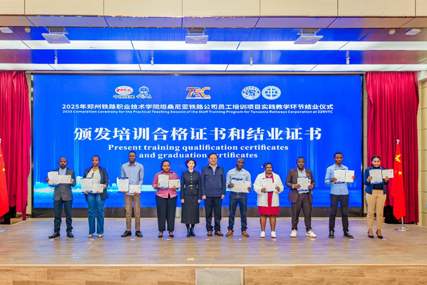李福胜向全体学员致以热烈祝贺。他表示,本次培训的顺利实施得益于各级单位的协同支持。在为期三个月的培训中,学员们系统学习了安全运行、客运作业等方面的理论知识,并深入中国铁路郑州局集团有限公司开展现场实习。通过校企导师的联合培养,学员们的岗位实操能力与综合职业素养得到了全面提升。他强调,此次培训不仅为学员个人职业成长夯实了基础,也为坦桑尼亚铁路事业的高质量发展注入了崭新动力。他寄语全体学员:“珍惜在中国的宝贵经历与情谊,将所学所获转化为推动坦桑铁路事业发展的不竭动力,争当中坦友谊合作的坚实桥梁。”