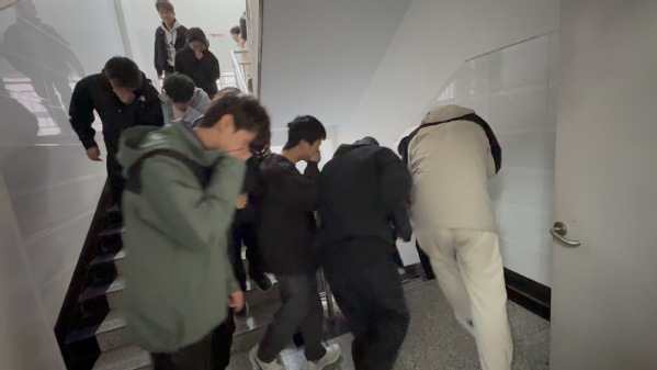 下午14时30分,随着一阵急促的消防警报声划破校园的宁静,演练正式拉开帷幕。各楼层报警装置启动,书院消防安全领导小组立即启动应急预案,通过广播系统立即下达紧急疏散指令。在学生志愿者的指引下,全体同学反应迅速,用湿毛巾捂住口鼻,弯腰低姿,按照预定的疏散路线,冷静、有序地从宿舍楼向指定的安全集结地点撤离。整个疏散过程组织严密、行动高效,千余名学生在1分30秒内全部安全抵达集合点,无一人遗漏,充分体现了书院日常安全教育的扎实成效。