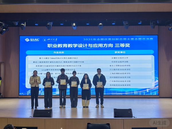 11月22-23日,2025年全国仿真创新应用大赛总决赛在四川大学望江校区成功举办。我校马克思主义学院胡宪刚、侯彬彬、朱令娴、尹航团队在仿真教学应用赛道荣获全国三等奖。