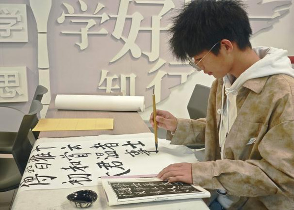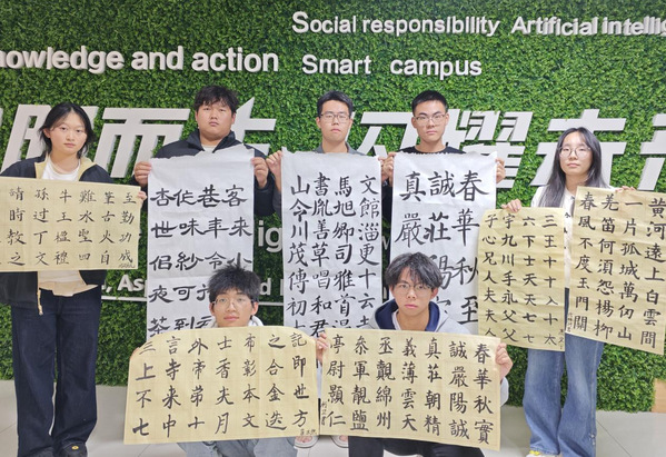 活动现场墨香氤氲,文房四宝与经典碑帖一应俱全。同学们在指导下择帖展纸,沉浸于笔墨世界。或凝神揣摩字帖气韵,或专注体会笔墨浓淡,在一撇一捺间感受汉字节奏之美,在提按转折中领悟传统文化精髓。现场交流互动频繁,艺术氛围浓厚温馨。参与学生普遍表示,此次活动既是一场美的熏陶,更是一次心灵的滋养。大家在笔墨流转中不仅提升了审美素养与动手能力,更深切感受到中华优秀传统文化的魅力。