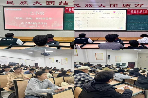 为了让大家更好的体会到学习的魅力,丰富校园文化建设,11月27日,二七书院举办了“探秘二进制,解码新思维”趣味学习主题活动。活动以二进制知识科普与实践体验为核心,助力学生夯实电气基础认知、感受数字技术魅力。