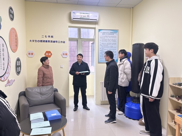 梁明亮一行实地察看了二七书院大学生心理健康教育辅导工作站的设施环境,详细了解日常管理、学生使用体验等细节,对书院心理工作站的建设运行情况表示肯定,并就进一步优化布局、氛围营造等提出指导性意见。