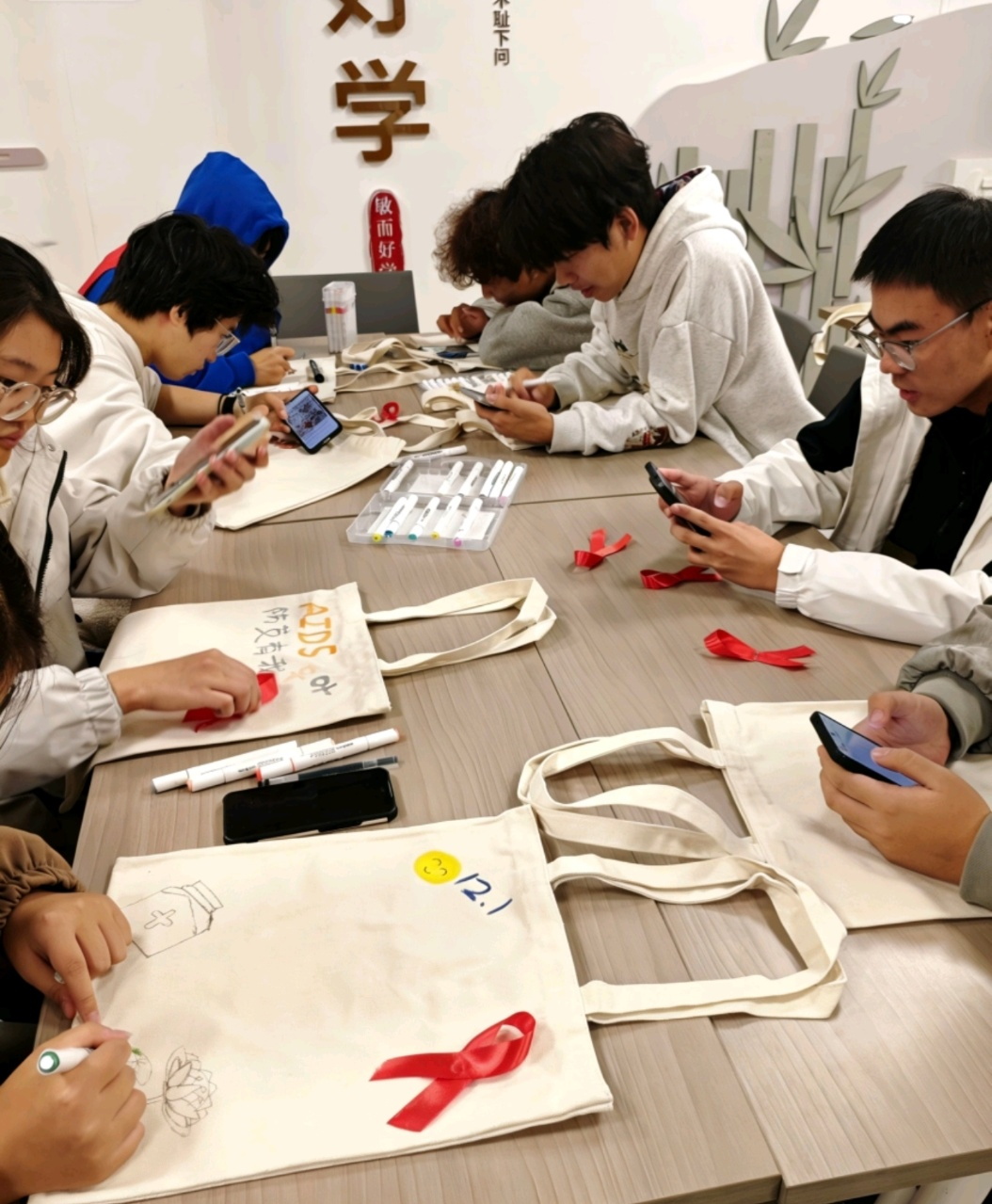 为引导学生树立“珍爱生命、科学防艾”的生活态度,推动健康防护理念传播,共筑青春健康防线。12月23日,天使书院举办“‘袋’走偏见,包容为爱”手绘防艾帆布包主题活动,书院部分同学参加。
