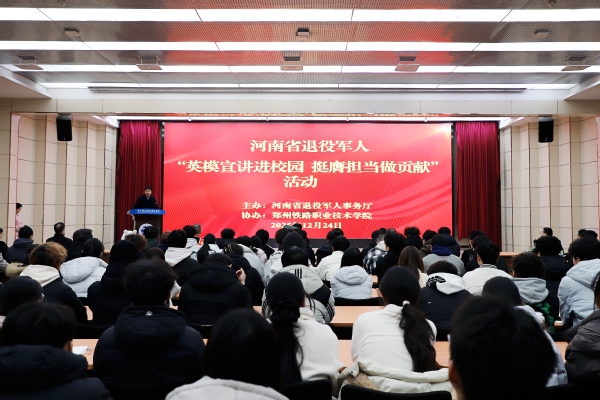 为深入贯彻落实党的二十大和二十届历次全会精神,全面贯彻落实习近平总书记关于退役军人工作的重要论述和在河南考察时的重要讲话精神,12月24日,由河南省退役军人事务厅主办的“英模宣讲进校园 挺膺担当做贡献”宣讲活动走进我校。省退役军人事务厅二级巡视员郭胜利,省退役军人事务厅思想政治和权益维护处处长宋梅芳,省退役军人事务厅思想政治和权益维护处一级调研员杨盛武,我校副校长梁明亮出席活动。本次活动特邀河南电视台主持人主持。党委宣传部、党委保卫部、校团委等部门负责人和200余名师生代表参加活动。