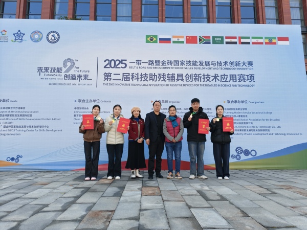 12月28日,2025“一带一路”暨金砖国家技能发展与技术创新大赛第二届科技助残辅具创新技术应用赛项在岳阳圆满落幕。我校医学技术与工程学院眼视光技术专业和视觉训练与康复专业的四名学生发挥出色,以小组总分第一的成绩获得本次大赛的一等奖,并晋级国际赛区,学校获评“最佳组织奖”。