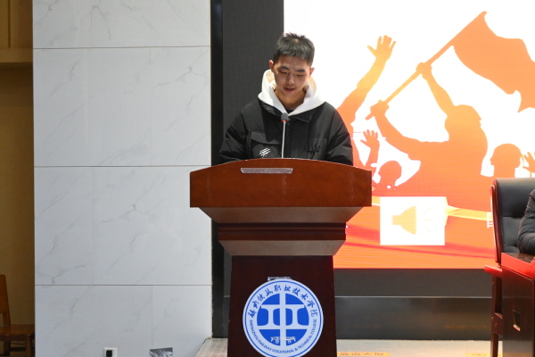 2025级新生学员代表杨奥淇在发言中表示,能够参加启航分党校培训深感光荣与责任。他承诺将认真学习党的理论,自觉传承红色基因,严守纪律、勤于实践,在思想上向党看齐、行动上为同学服务,努力把个人理想融入强国伟业,争做政治坚定、本领过硬、作风优良的新时代青年。