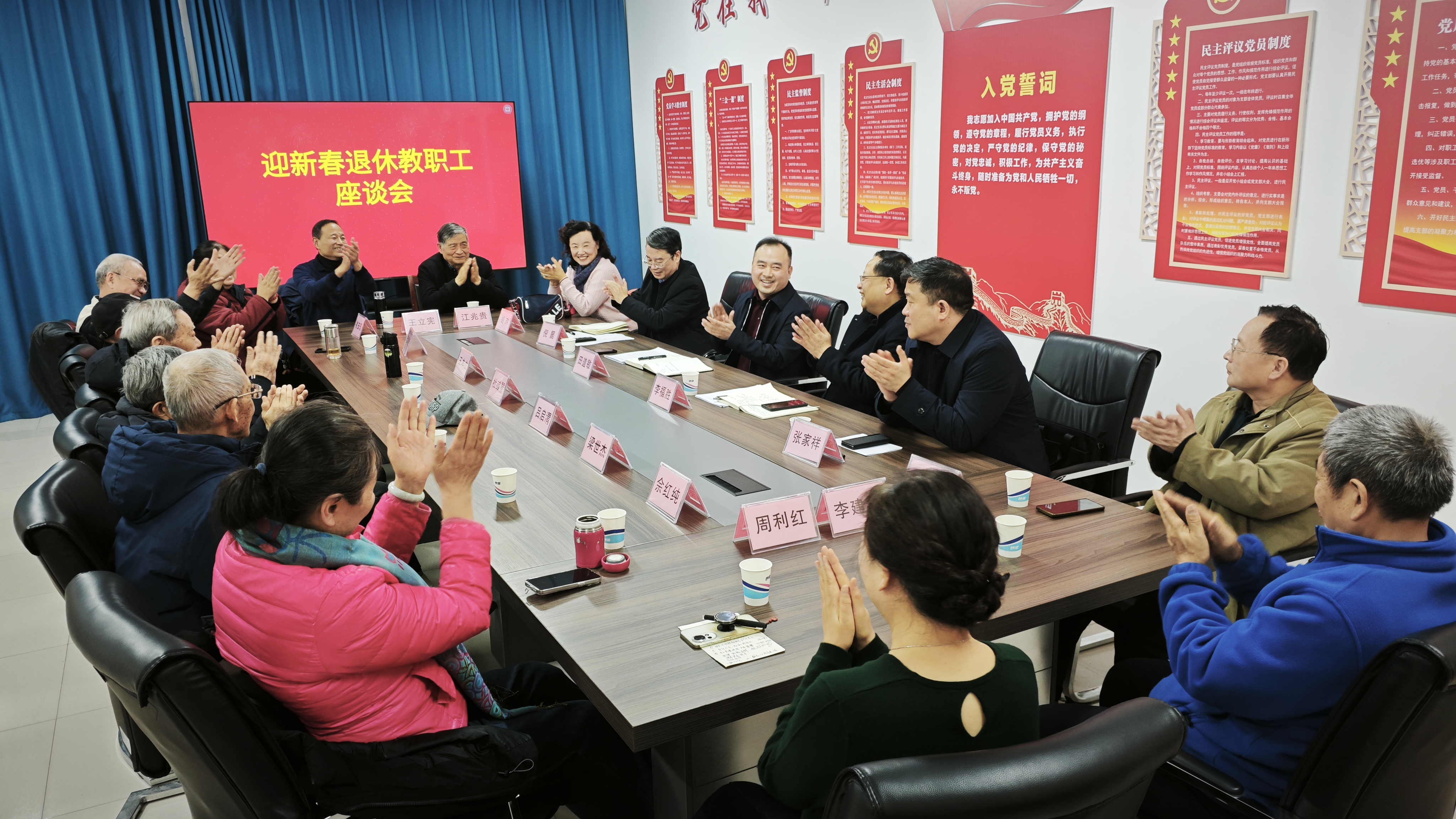 薪火传情迎新春、共话发展续华章。1月27日上午,迎新春退休老同志座谈会在幸福校区退休职工工作处会议室召开,党委书记田道敏、校长李福胜出席会议并讲话,退休老同志代表、党政办公室、退休职工工作处等部门负责同志参加会议,会议由党委副书记倪居主持。
