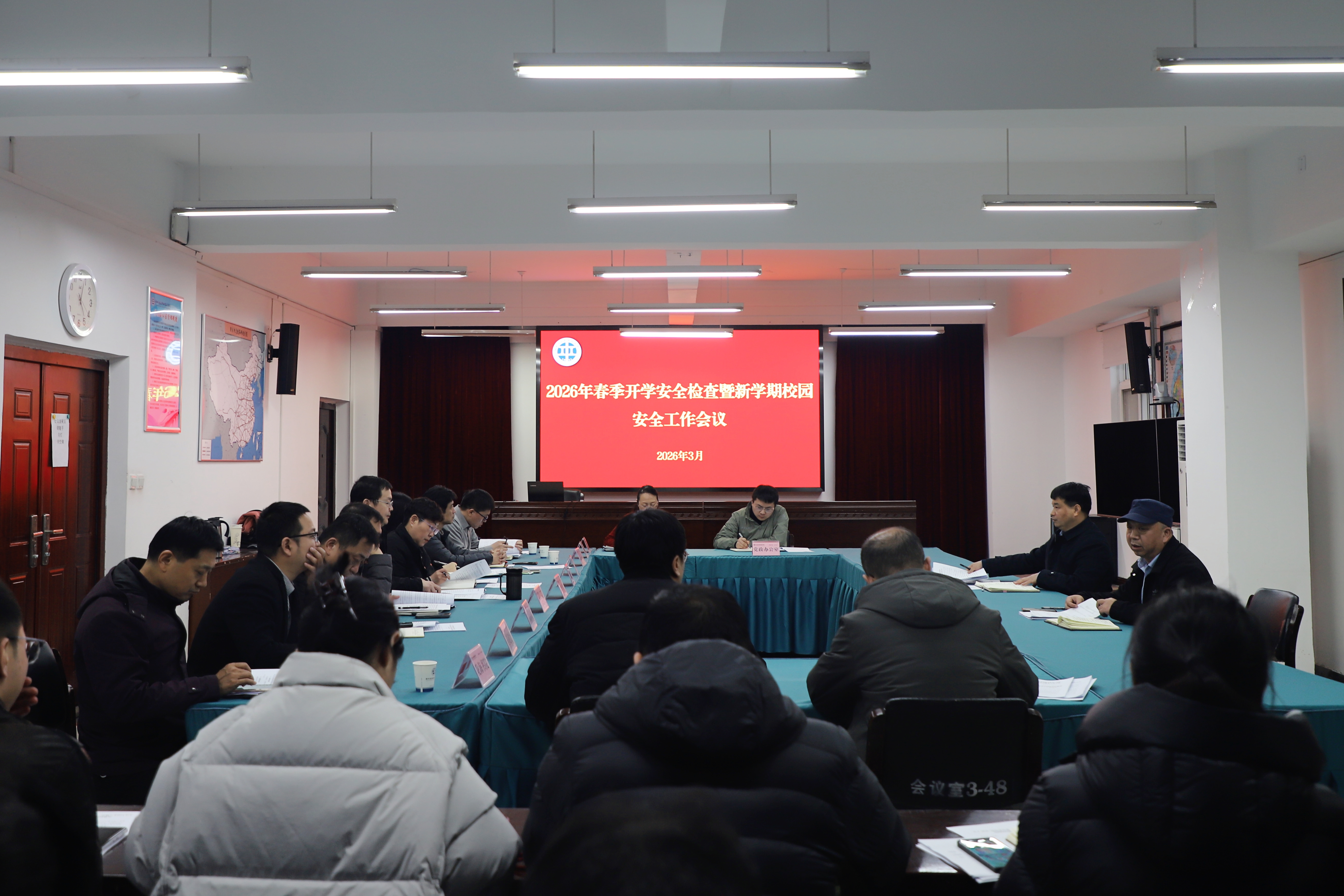 会议传达学习了上级《关于开展2026年春季开学校园安全督导检查的通知》及高校校园安全18项重点内容,就贯彻落实学校党委关于春季开学准备及校园安全要求进行安排。会议对春季开学暨新学期校园安全工作提出具体要求,一是高度重视,强化统筹分工。各部门要始终把校园安全摆在突出位置,健全安全工作责任体系,明确任务分工,压实各级责任,形成上下联动、齐抓共管的校园安全工作格局。二是靠前指挥,注重过程和细节。坚持部门领导带头、一线督导,紧盯校园安全18项关键环节和重点部位,从严从细抓好各项安全措施落实,做到全程管控、闭环管理,切实把风险隐患化解在萌芽状态。三是加强培训,突出隐患排查。常态化开展校园安全知识教育和应急演练,提升师生安全防范意识和自救互救能力。同时深入开展校园安全隐患拉网式排查,立查立改、动态清零,坚决守住校园安全底线。