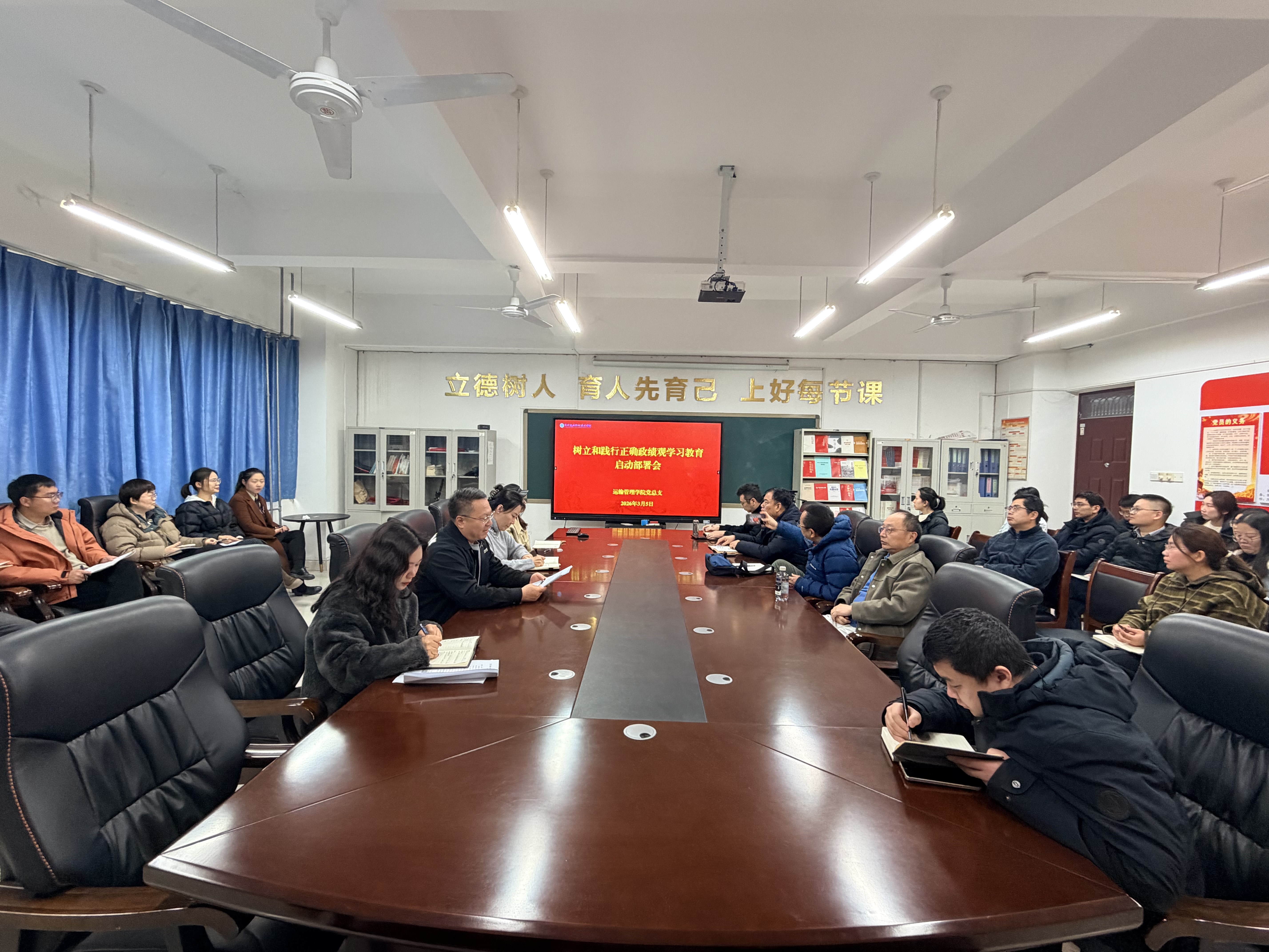 曹启勇传达学习了学校党委关于开展树立和践行正确政绩观学习教育的工作要求,深刻阐释了开展此次学习教育的重要意义、目标任务与实践要求。同时对学院学习教育进行全面部署,明确学习研讨、问题查摆、整改整治、建章立制等重点环节,细化工作安排、责任分工与时间节点,要求坚持学查改一体推进,力戒形式主义,切实把学习教育成果转化为履职担当、服务师生的实际行动。