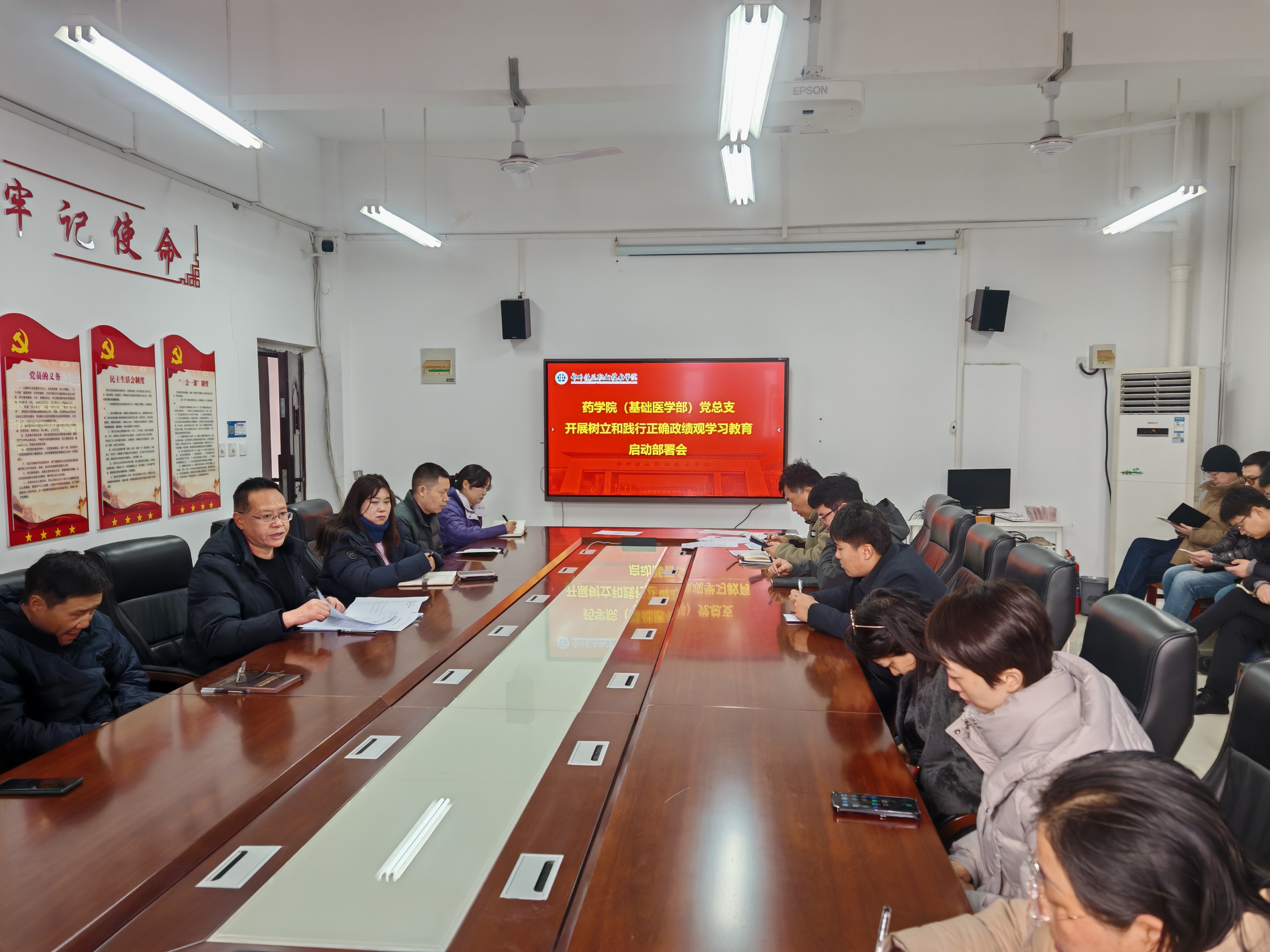 3月6日上午,药学院(基础医学部)党总支在3302会议室组织开展树立和践行正确政绩观学习教育启动部署会,药学院(基础医学部)领导班子成员和全体党员教师参加。会议由党总支书记李建升主持。