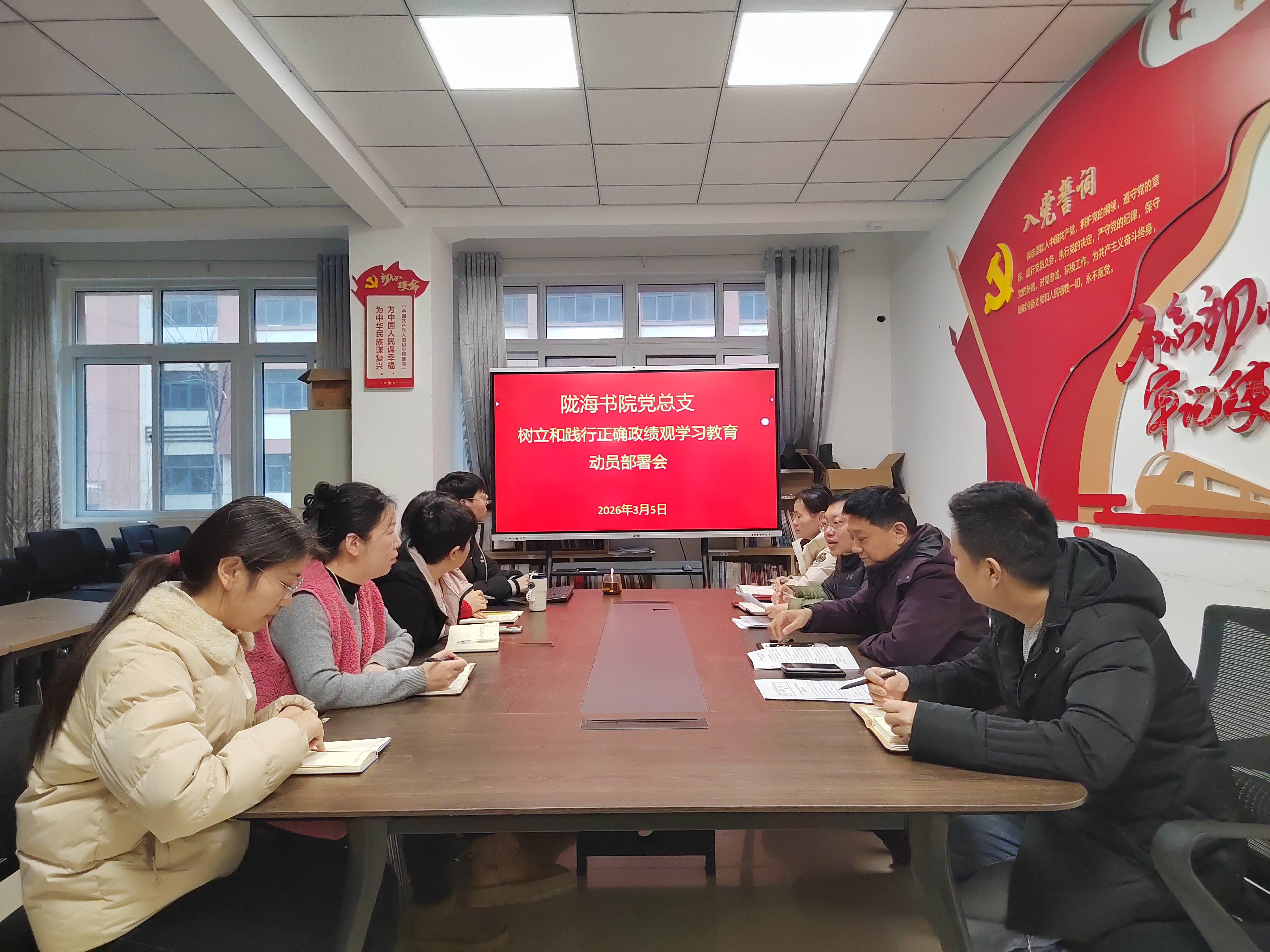 3月5日,陇海书院党总支召开专题会议,深入学习贯彻习近平总书记关于树立和践行正确政绩观学习教育的重要讲话和重要指示精神,传达中央、省委、省教育厅党组和学校党委的会议精神,动员部署开展书院树立和践行正确政绩观学习教育。