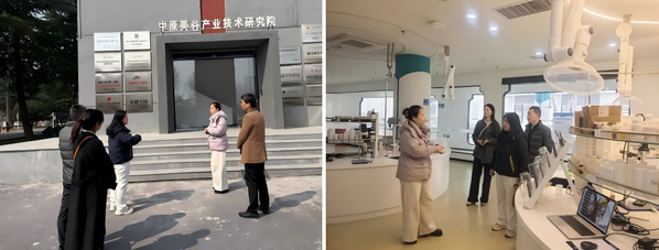 走访期间,中原美谷产业研究院负责人对药学院教师一行的到来表示热烈欢迎,并带领教师团队参观了中原美谷的重点实验室、科技成果展示大厅及中试车间,详细介绍了研究院的发展定位、核心业务及创新成果。老师们对研究院“立足产业、面向市场”的科研导向以及“产学研用”一体化的运营机制给予了高度评价。