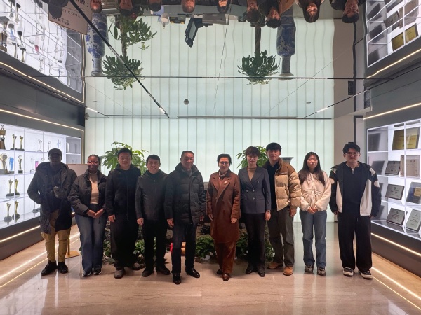 随后,艺术学院一行参观了腾升建筑装饰股份有限公司的设计中心,详细了解了企业生产实践流程、项目设计与施工技术。特别值得一提的是,为更好地推进我校留学生教学工作,艺术学院还带领在校留学生一同参与此次交流活动,留学生现场学习了装饰项目的设计与施工过程,直观感受了企业文化和实际工作环境,为后续毕业实习工作的开展打下了坚实基础。