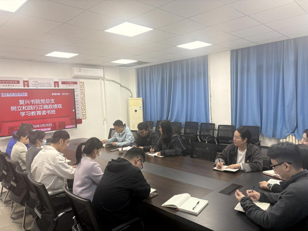 为深入学习贯彻习近平总书记关于树立和践行正确政绩观的重要论述,全面落实学校党委工作部署,3月26日至27日,复兴书院党总支在书院党员活动室举办为期两天的树立和践行正确政绩观学习教育读书班。书院全体党员参加学习。