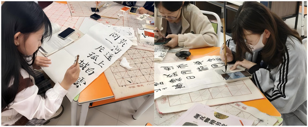 书法临摹区域则墨香悠悠,宁静雅致。同学们端坐案前,提笔凝神,认真临摹经典碑帖,在一笔一画中体会汉字的结构之美与笔墨韵味。大家不时交流运笔心得、分享书写感悟,在墨香流转中亲近翰墨文化,提升书写素养,展现出书院学子谦逊好学、笃行进取的精神风貌。