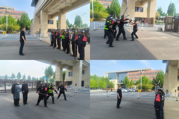 演练前,党委保卫部制定了详细方案,对参演人员开展专项培训,明确演练流程与岗位职责。演练中,消防安全环节模拟火情,应急小组快速启动预案,开展初期火灾扑救,引导人员有序疏散;反恐防暴环节模拟“暴徒”闯校,门卫一键报警,应急小组协同拦截,快速控制现场。