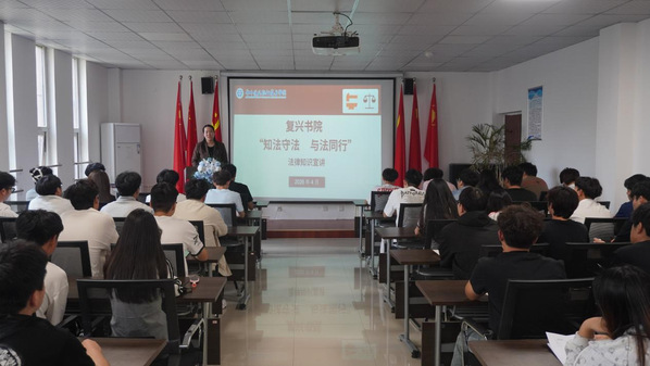 4月14日,复兴书院复兴大讲堂开展“知法守法 与法同行”法律知识专题宣讲,由学工办主任胡宪丽主讲,面向书院学生干部、各班班长展开。胡老师紧扣法律本质、我国法律体系、法律法规作用、法治社会意义四大核心内容,用通俗语言解读法律内涵,以“法律金字塔”形象阐释以宪法为核心的法律体系架构。她结合校园欺凌、网络诈骗等真实案例,讲解法律对行为的规范与权益保障作用,阐释法治社会对国家稳定、青年成长的重要意义,勉励学生干部带头尊法学法守法用法,将法治精神内化于心、外化于行。
