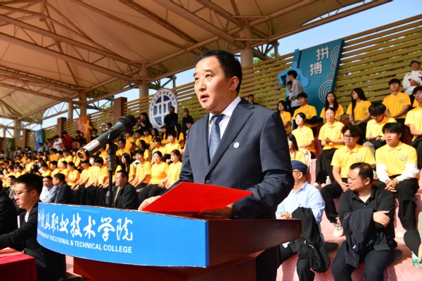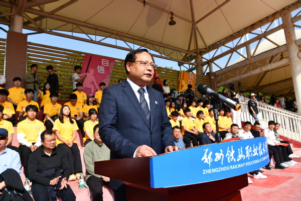 在热烈的掌声中,党委书记田道敏宣布郑州铁路职业技术学院2026年田径运动会开幕。