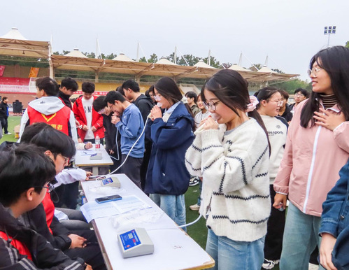 测试现场组织周密,流程规范有序。学生们在肺活量、坐位体前屈、立定跳远等多个项目上全力投入,展现了青年学子昂扬向上的精神面貌和良好的身体素质。工作人员与志愿者各司其职,服务保障细致到位,确保了测试工作的公平、公正与高效完成。