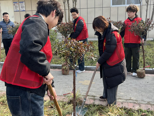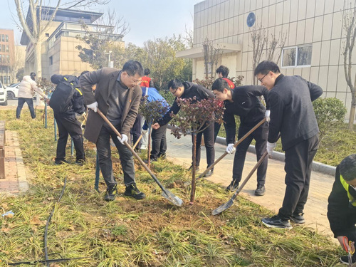 活动现场,大家热情高涨、干劲十足。在专业人员的指导下,参与人员分工协作、配合默契:有的挥锹挖坑,有的扶苗培土,有的提水浇灌,每一道工序都一丝不苟、认真细致。大家以饱满的热情投入到植树劳动中,现场一派热火朝天的繁忙景象,充分展现了二七书院教职工团结协作、奋勇争先的良好精神风貌。经过一番辛勤劳作,一株株新栽的苗木迎风挺立,为春日的校园增添了勃勃生机。