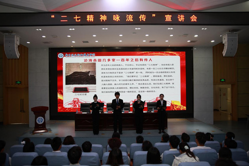 为深入贯彻党的二十届四中全会会议精神,落实立德树人根本任务,传承红色基因,近日,二七书院在学校第二报告厅举办二七精神主题宣讲活动,“二七精神咏流传”宣讲团为现场师生带来精彩宣讲。书院全体专职育人导师、入党积极分子学生代表参加了活动。