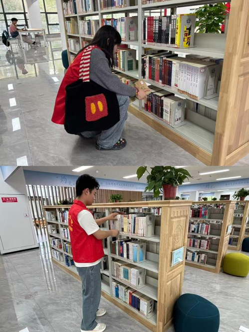 活动前期,二七书院志愿者们走进图书馆开展整理志愿服务。身着红色志愿马甲的同学们以饱满的热情投入工作:有的细致擦拭书架灰尘,有的将散落书籍按编号分类归位,以认真负责的态度为读者营造整洁有序的阅读环境。大家分工协作、默契配合,用双手让书架焕然一新,用行动践行志愿服务精神,为校园书香氛围的营造贡献青春力量。