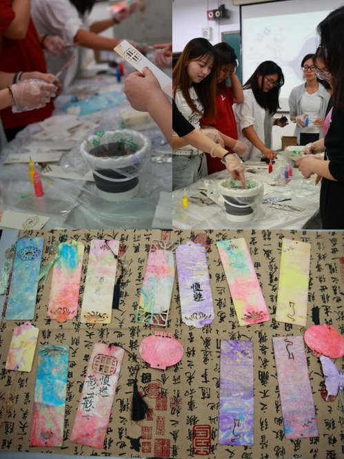 读书分享会结束后,书院组织了漆艺书签制作体验活动。同学们戴上手套、调配漆料,以晕染的方式在书签上创作色彩图案。大家发挥创意,用不同色彩晕染出独一无二的纹理效果,将对阅读的热爱融入方寸之间。一枚枚色彩斑斓、各具特色的漆艺书签,既是本次读书日活动的专属纪念,也为同学们留下了与阅读相关的美好回忆。