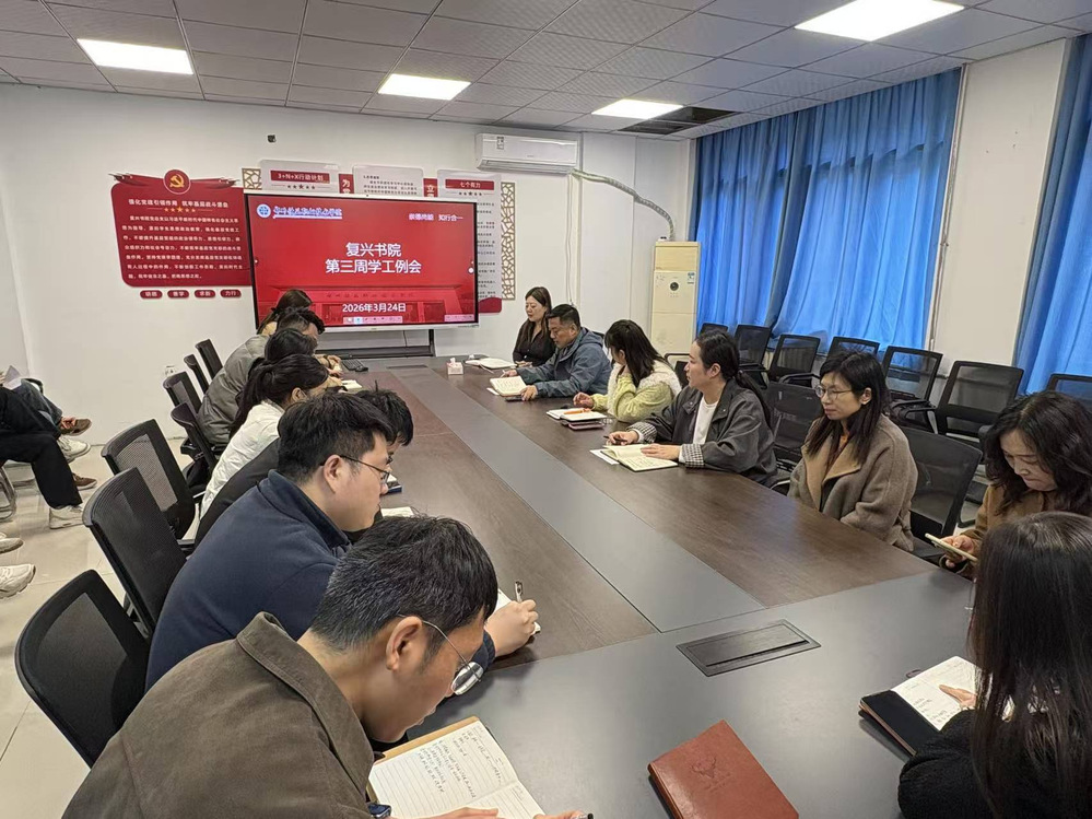 为进一步统筹推进书院各年级学生管理工作,压实辅导员育人职责,复兴书院于2026年3月24日在C111组织召开第三周学工例会。