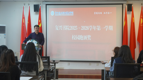 为表彰校园跑活动中表现优异的学生,营造热爱运动、强身健体的良好校园氛围,4月14日,复兴书院隆重举行2025-2026学年第一学期校园跑颁奖典礼。书院相关负责人、全体辅导员及获奖学生代表出席本次典礼,共同见证青春荣耀、传递运动力量。