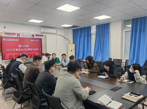 为确保2026年学校春季运动会安全有序、圆满顺利举办,4月21日上午,复兴书院在 C111 会议室召开春季运动会协调筹备协调会。书院相关负责人及全体辅导员参会,共同梳理筹备进展、明确责任分工、细化推进举措,凝聚工作合力。