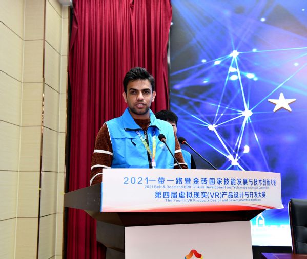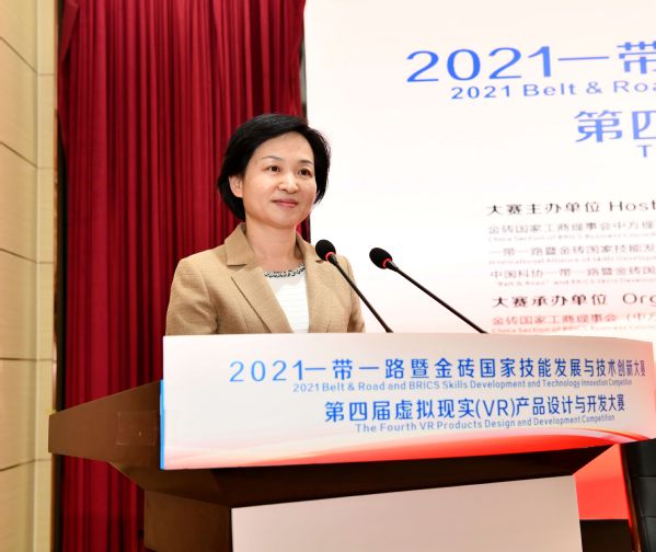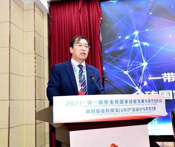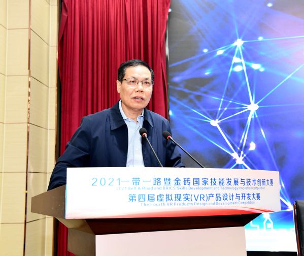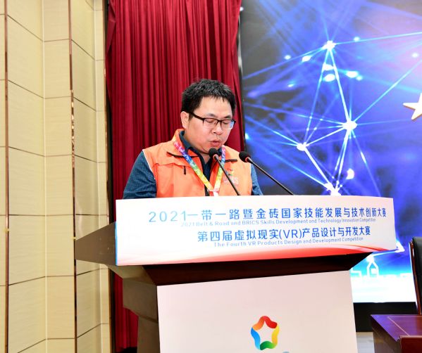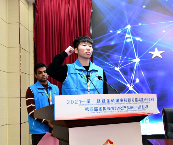 10月14日,2021一带一路暨金砖国家技能发展与技术创新大赛第四届虚拟现实(VR)产品设计与开发大赛在我校隆重开幕。