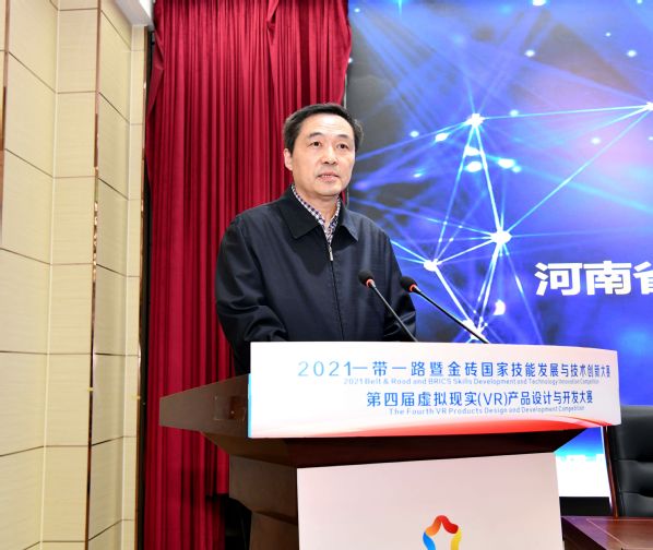 河南省终身教育协会会长、河南省委高校工委原副书记、河南省教育厅原副厅长张亚伟代表赛项联合主办方河南省终身教育协会向大赛胜利开幕,表示热烈的祝贺。张亚伟指出,“一带一路”倡议是党中央、国务院根据全球形势深刻变化,统筹国际、国内两个大局做出的重大战略决策。随着2021年的到来,人们对虚拟现实行业未来的发展也有了很大的期待,VR技术已经被公认为是21世纪重要的发展学科以及影响人们生活的重要技术之一。张亚伟表示,正在起步期的中国VR产业,既需要大量的VR从业者,也需要高质量、专业的VR人才,所以我们必须培养人才、爱惜人才、留住人才、用好人才,本次技能大赛为不断增强行业的自主创新能力和建设一支高素质的技能人才队伍提供了重要的平台。