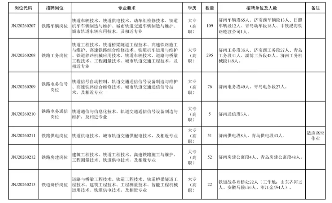 中国铁路济南局集团有限公司2026年度 招聘普通高校大专(高职)毕业生公告(二) |
