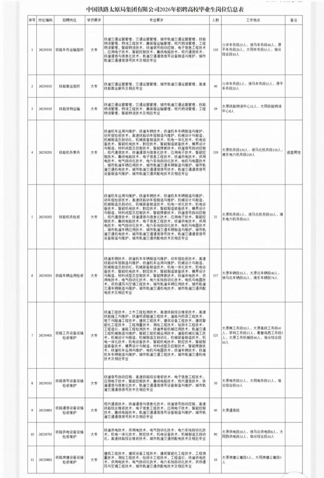 中国铁路太原局集团有限公司2026年招聘高校毕业生公告(二) |