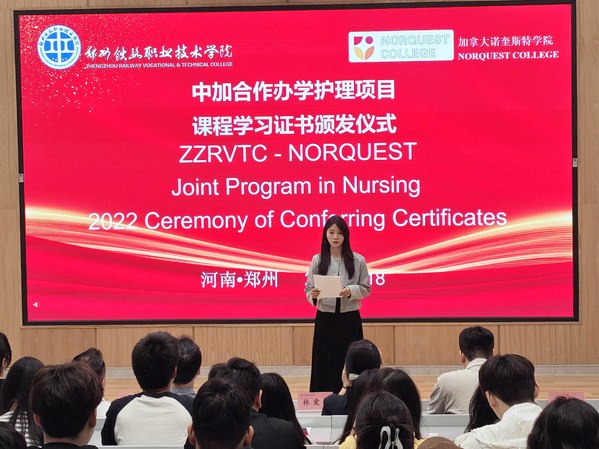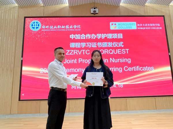 仪式上,加拿大诺奎斯特学院代表为2022级学生颁发了课程学习证书,标志着同学们在国际化护理人才培养道路上迈出了坚实一步。此次仪式不仅是对学生学习成果的肯定,更是对中加教育合作成果的生动展示,为项目持续健康发展奠定了坚实基础。