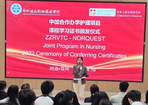 4月18日,我校成功举办中加合作办学护理项目2022级课程学习证书颁发仪式。护理学院、国际交流与合作处、丝路书院(国际教育学院)以及加拿大诺奎斯特学院等单位的负责人、教师代表与护理专业各年级学生共同见证了这一重要时刻。
