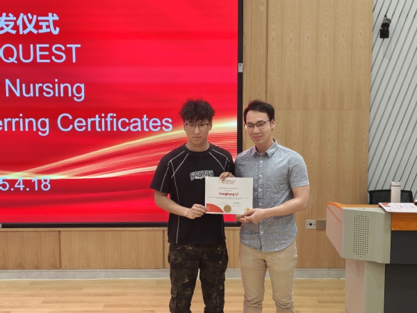 加拿大诺奎斯特学院教师Jia Cheng Zhang在发言中表示,此次项目的成功不仅是对学生们辛勤学习的肯定,也是中加合作办学的优秀成果表现。他特别赞赏学生们展现出的学习热情和专业追求,期待同学们能够融汇东西方护理智慧,成长为具有国际竞争力的护理人才。