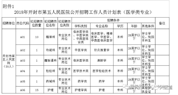 2018年开封市第五人民医院公开招聘工作人员简章